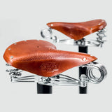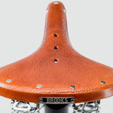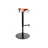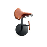 An eccentric bar stool with black mat lacquered metal frame. Made unique by the Classic 'Brooks' saddle leather seat on springs. This product gives you a mixture of dynamic design, with a touch of style for your rooms.