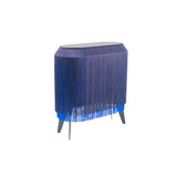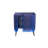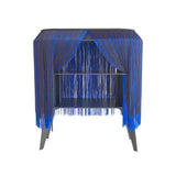 This side table is endowed with long, silky fleece. The only thing it asks for is to snuggle up against a sofa or to sit at your bedside... His elegant coat gives him the appearance of a miniature standing boudoir, behind which objects and secrets can be discreetly sheltered. Including a secret compartment, coming with a comb so that you can comb the fringe.