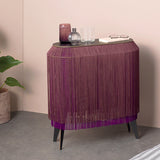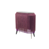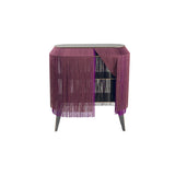 This side table is endowed with long, silky fleece. The only thing it asks for is to snuggle up against a sofa or to sit at your bedside... His elegant coat gives him the appearance of a miniature standing boudoir, behind which objects and secrets can be discreetly sheltered. Including a secret compartment, coming with a comb so that you can comb the fringe.
