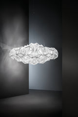 Drusa draws inspiration from crystals poking out from crevices in the rocks; they exhibit an ever-changing, poetic and multiform kaleidoscope when hit by the light. The contemporary, chromatic angles accentuated by Lentiflex® finished with a Velvet print, are muted by the central light source, that not only gives depth to the design, but creates harmony between light and shape. Drusa, resembling a diamond, is available in suspension and ceiling versions, and with its infinite chromatic shades, brings a fresh, trendy feel to any space.