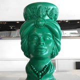 Designer Michael Milesi redesigned a traditional symbol of the Sicilian tradition, the Moor, into a contemporary, multi functional object of functional decor that can be used both as a small table or a seat. This innovative reproduction of a Moor woman's head is part of the re-made in Sicily project.