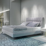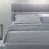 Supported by a wooden structure with curved and delicate lines, Kelly stands out for the unique covering of its base perimeter and the sinuous, enveloping design of its headboard.