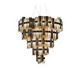La Lollo is a tribute to the roaring 50’s, a series of graceful suspensions that reawaken images of divas in the spotlight. The techno-polymer cylinders, in varying shades of contemporary prismatic metallization and geometric patterns, alternate around a central, illuminated ring. The collection includes 2 sizes, as well as an opulent chandelier, all designed for public or domestic spaces, or to be combined in dramatic installations.