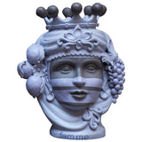This anthropomorphic vase is made entirely by hand and painted in Mauve and Mud colors. The piece is inspired by ancient Sicilian legends of love and revenge between a Moor and a Maiden. The monochromatic matte color patterning and the mud rich in natural pigments provide intense color depth. Only the eyes are glazed so they stand out, emphasizing the beauty of the gaze.
