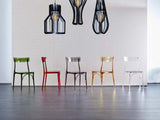 A dedication to the beloved city: Milan. This chair is characterized by modern and innovative materials: polycarbonate, non-toxic plastic material, with excellent mechanical and resistance properties. Made of recyclable material, the chair is stackable and suitable for indoor and outdoor.