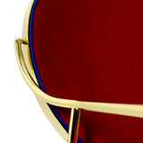 This striking chair has an iron structure covered with a 24-karat gold flash plating, and elegant galvanized brass feet. The back cushions moves to achieve the perfect orientation and the seat are covered in cotton velvet.