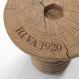 Stool in solid scented cedar machined from a single block, its shape inspired by the characteristic thread of allen screws. The products are made from completely natural wood, hand-finished without the addition of any treatment. Any movements, cracks and changes in the appearance of the wood are intrinsic characteristics of these items and result from the natural settlement and diverse environmental conditions of the wood.