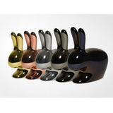 The idea of the rabbit, a gentle, lovable and shy animal, comes from the association of its silhouette with that of a seat, where the rabbit's ears become the backrest of the chair. The smaller version is conceived for children's fun: the Rabbit chair can be used to sit leaning against the ears of the rabbit or on the opposite side, riding it and resting the forearms on his ears.