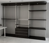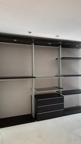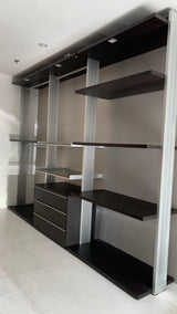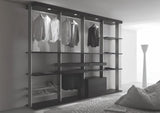 Dressing made by anodized aluminium uprights and shelves in white Matrix or Rovere Moro. Sidus represents the maximum expression of flexibility for a Dressing. It is possible to personalize it and use the same in different dimensions and in all variants you wish. A wide range of accessories, finished and cared, point out the versatility design and the comfort of this system.