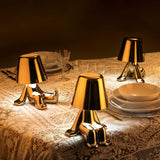 Designed by Stefano Giovannoni, Golden Brothers is a family of lamp-characters which, reflecting a soft light on their body, enhance the plasticity and fluidity of the silhouette. The Golden Brothers, assuming different postures, create an animated landscape and, due to their abstract-figurative approach, they are the perfect detail that can characterize the table and personalize every corner of the house.