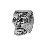 Decorated with the graphic pattern of the Mexican skull, a symbol created to exorcise death and celebrate life, it becomes an extravagant stool/table with a rigid top. Job says he was inspired by a legendary figure who lived wrapped in mystery: 'the singer without a name'.