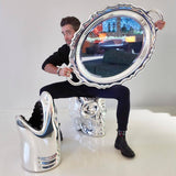 Mirror is part of a new collection of Studio Job that plays with the icons of history and architecture, rooted in our memory, ranging between East and West. The precious Classic 17th century trays are revived today in an object designed to be out of scale, which takes on new functionality, to be used as a tray or as a decorative wall element.
