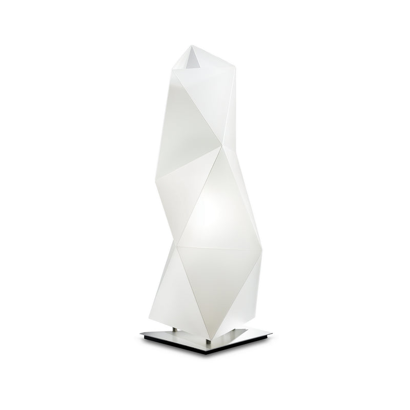 Sculptural, dynamic, and modern, inspired by the iconic works of Brancusi. Diamond’s geometric design allows the light to accentuate its various facets and angles. The luminous sculpture is available in three dimensions, each fit for different areas, from bedside tables to sitting rooms, and when grouped together, they create domestic installations.