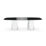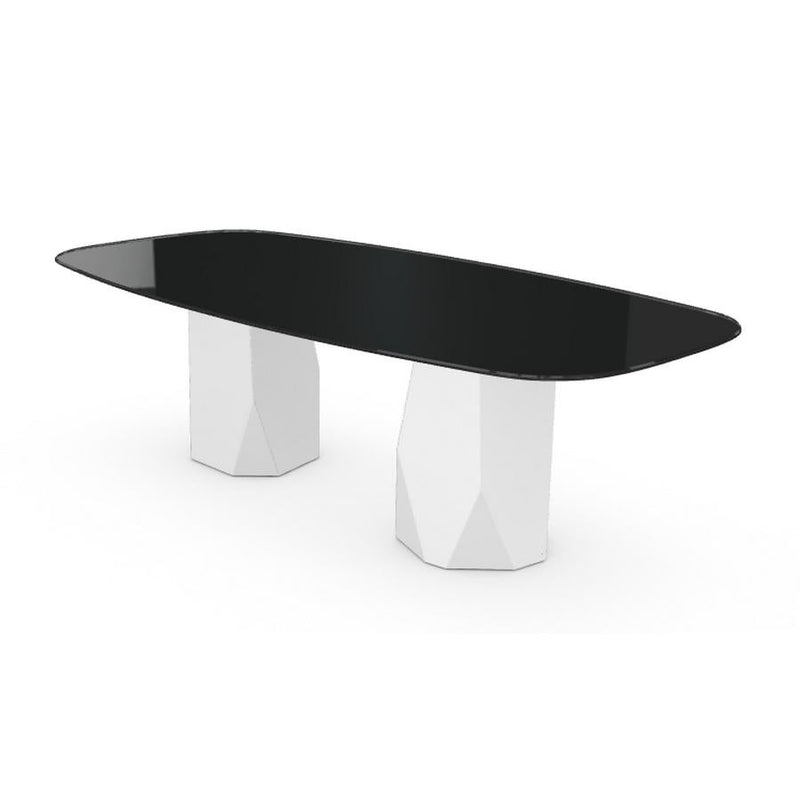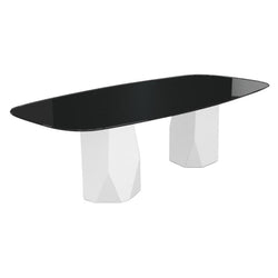 Menhir Two Bases, Dining Table with Black Glass Top on Metal Base