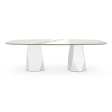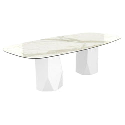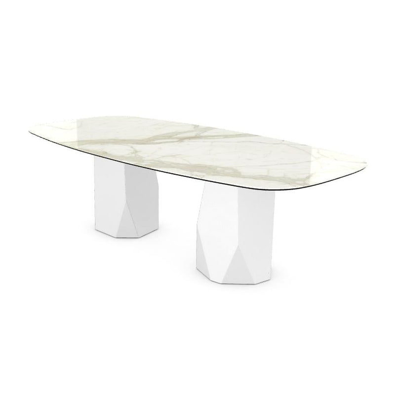 Menhir Two Bases, Dining Table with Calacatta Ceramic Top on Metal Base