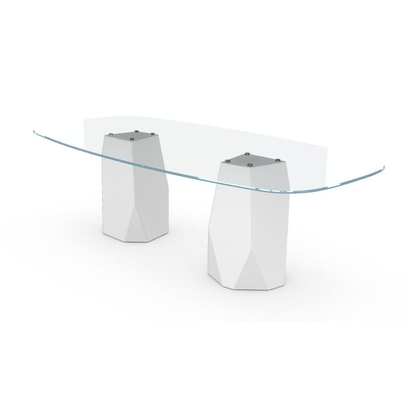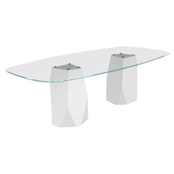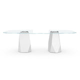 Menhir Two Bases, Dining Table with Clear Glass Top on Metal Base