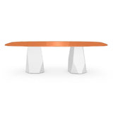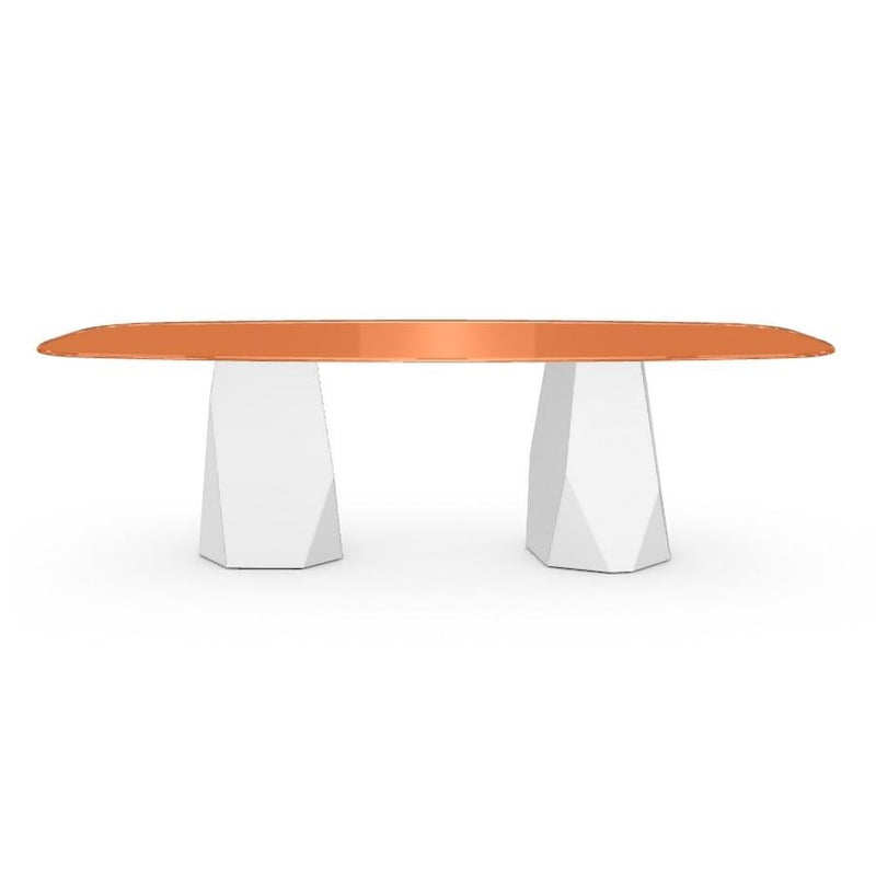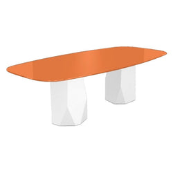 Menhir Two Bases, Dining Table with Orange Glass Top on Metal Base