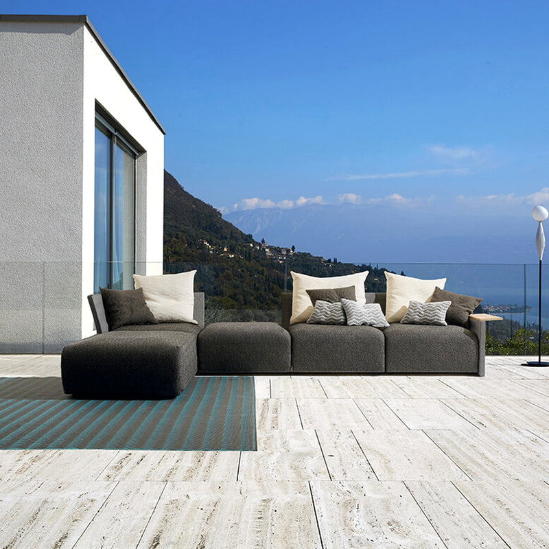 Comfortable and informal, "Begin" is a modular seating system that offers an intimate and relaxed atmosphere. The volumes are pure and generous. The outdoor "Begin" sofa designs a getaway, a protected area that facilitates spontaneous and free attitudes.