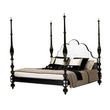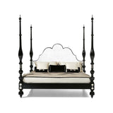 The average person spends about 26 years sleeping in their life which equates to 9,490 days. This hand carved Four Poster bed was crafted in Italy by Oak design, known for their high-quality furniture. Finished in an elegant black lacquer with a white Italian leather board. Custom made to fit an Eastern King Size Mattress measuring 76 inches wide by 80 inches long.